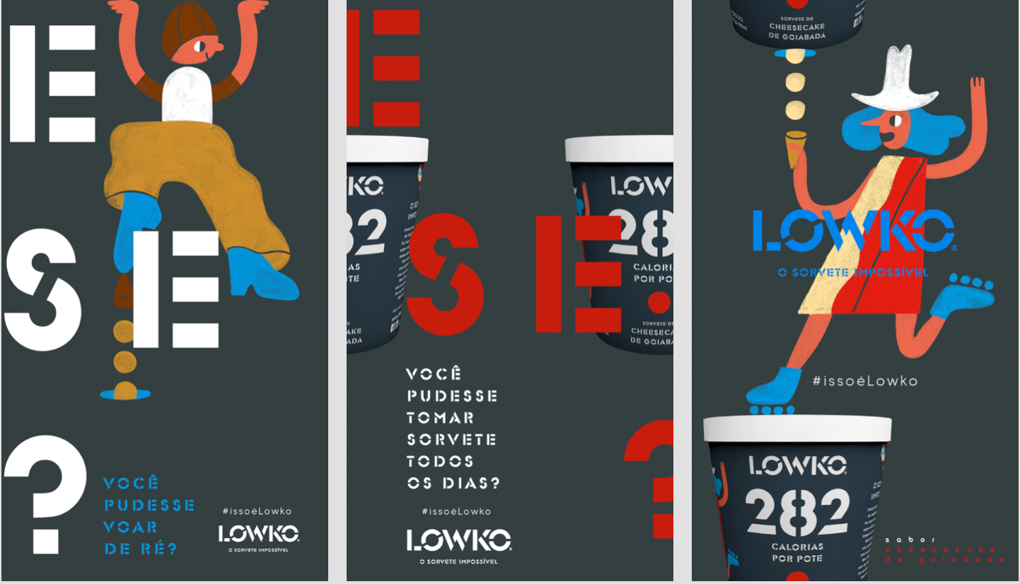 / Lowko is an ice cream that you can have every day because it’s low calorie, sugar-free and made with naturals ingredients. In other words, the impossible ice cream. We created a concept that brings the impossible world to the real world. “E se?” It means: If I could? Is the point which connects these two worlds. Also, every flavor has a character who brings alive the sensations of the lowko ice cream. Take a look. #ISSOÉLOWKO. /